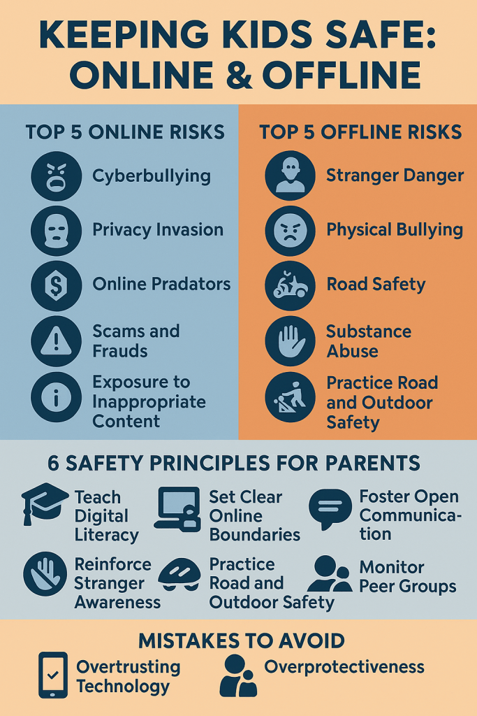 In the digital age, parenting has taken on a new and urgent challenge: keeping children safe both online and offline. As technology connects children to the world, it also exposes them to unseen risks. Simultaneously, traditional safety concerns like bullying, accidents, and stranger danger remain ever-present in the physical world. Balancing both realms of safety is a tough but essential task for modern parents.
