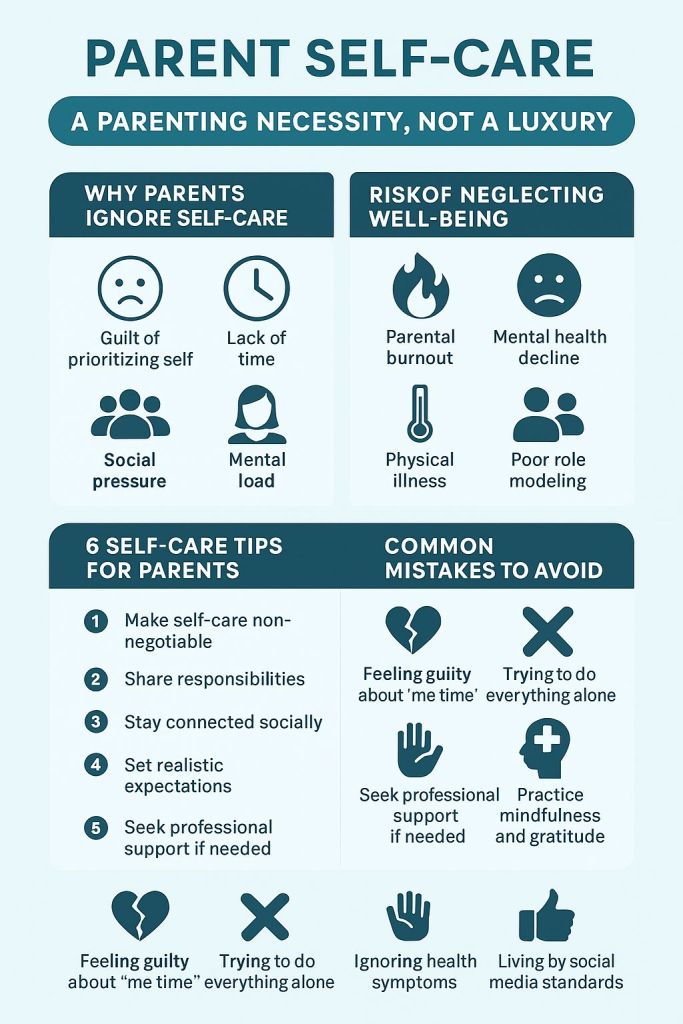 When people talk about parenting challenges, they often focus on the child—discipline, education, health, behavior. But one of the most overlooked yet critical challenges is the parent’s own well-being. In the endless race to meet their child’s needs, many parents forget that they too are human—with physical, emotional, and mental needs that must not be ignored.