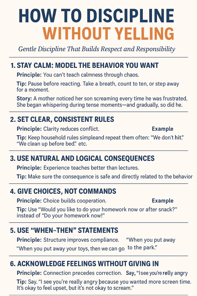 Yelling may grab attention, but it rarely teaches lessons. More often, it builds fear, resentment, or shame. As parents, we want our children to behave well—not out of fear—but from understanding and self-control. Disciplining without yelling isn’t about being permissive. It’s about teaching with respect, consistency, and emotional intelligence.