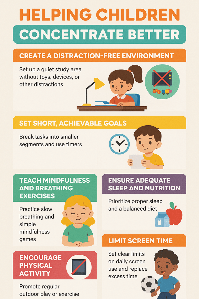 Here’s a comprehensive guide for parents and teachers to help children concentrate better: